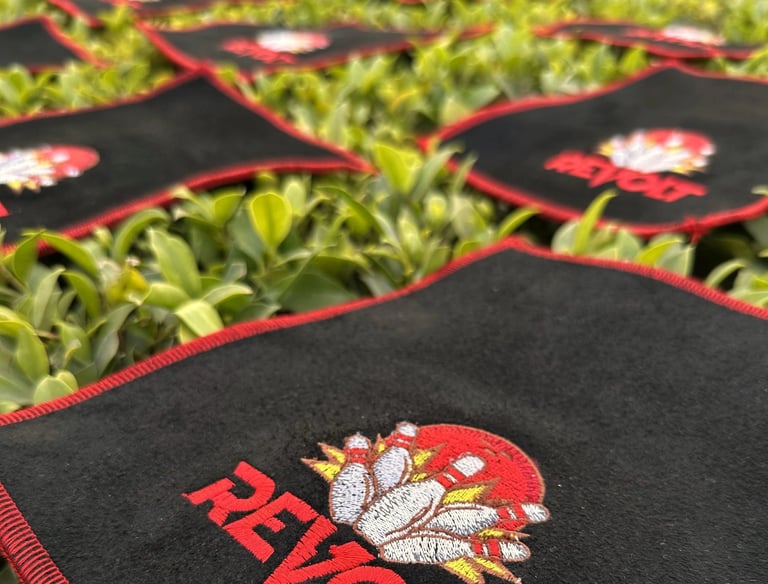 Revolt Bowling Supplies is a company that manufactures shammy pads in-house, and its revolt shammies are well-known across the United States. Additionally, Revolt Bowling offers customized shammies featuring your pro shop logo, company logo, or your name. We utilize high-quality embroidery machines that perform excellently. Our range includes leather shammy pads and rubber shammy pads available in various colors, sizes, and shapes; everything is customizable, making us the best at what we do.